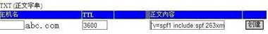 include:spf.263xmail.com ~all",必须带上""号,然后点击“创建”按钮即可。