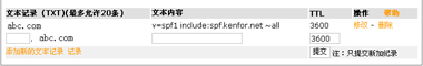 登录新网的域名管理平台(http://www.xinnet.com网站),选择添加记录的类型为TXT,在内容中输入v=spf1